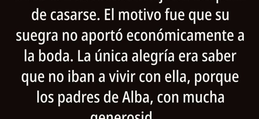 Mi hija, Alba, empezó a tratar con desdén a su madrastra justo después de casarse. El motivo fue que su suegra no aportó económicamente a la boda.