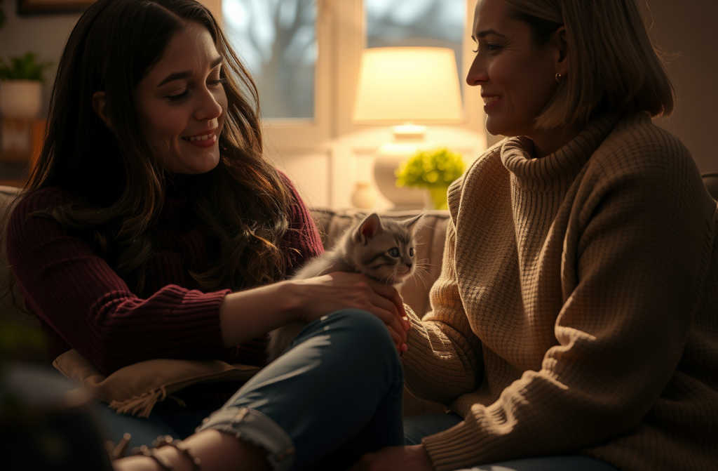 תסתכלי על הכורסה ליד הרדיאטור זה פינת השינה האהובה עליה. רק אל תבהילי אותה, יש לה ציפורניים חדות והיא קצת ביישנית עם אחרים. ואם יצטרך פלסטר, את יודעת איפה הארון תרופות.