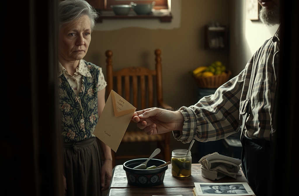 באת, חייך הגבר כשראה על הסף את השכנה רותם, והזמין אותה לשולחן. הם ישבו, שתקו, העלו זכרונות מהדר. לפתע שלף איתן מעטפה מכיסו.