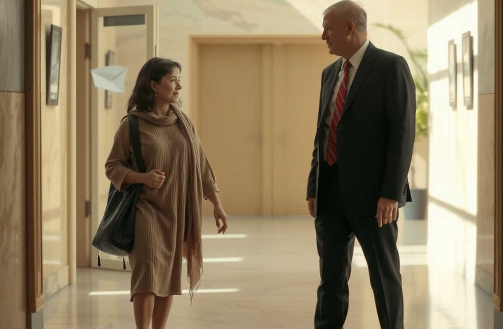 במקום להירתע, האישה הוציאה לאט מהכיס קלף זהב כבד כרטיס מפתח עשוי זהב טהור. היא נגעה בו למנעול הדלת הכבדה המובילה למשרד המנהלת, שנפתחה מיד בנקישה חדה. היא הפנתה אליו מבט קפוא שכמו הפך את הדממה למלח גס.