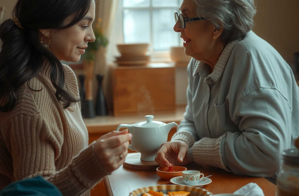 הנחתי מולה כוס תה, התיישבתי מולה. הסתכלתי על הפנים המוכרות קמטי הזמן לצד העיניים, שפתיים קפוצות. שבעים ושתיים. שיער כסוף, אסוף בדייקנות. בגד חדש, שמלה תכלת דני קנה לה בשבוע שעבר והתגאה לי בווטסאפ: “לאמא מתנה, סבתא הייתה בשמים”.