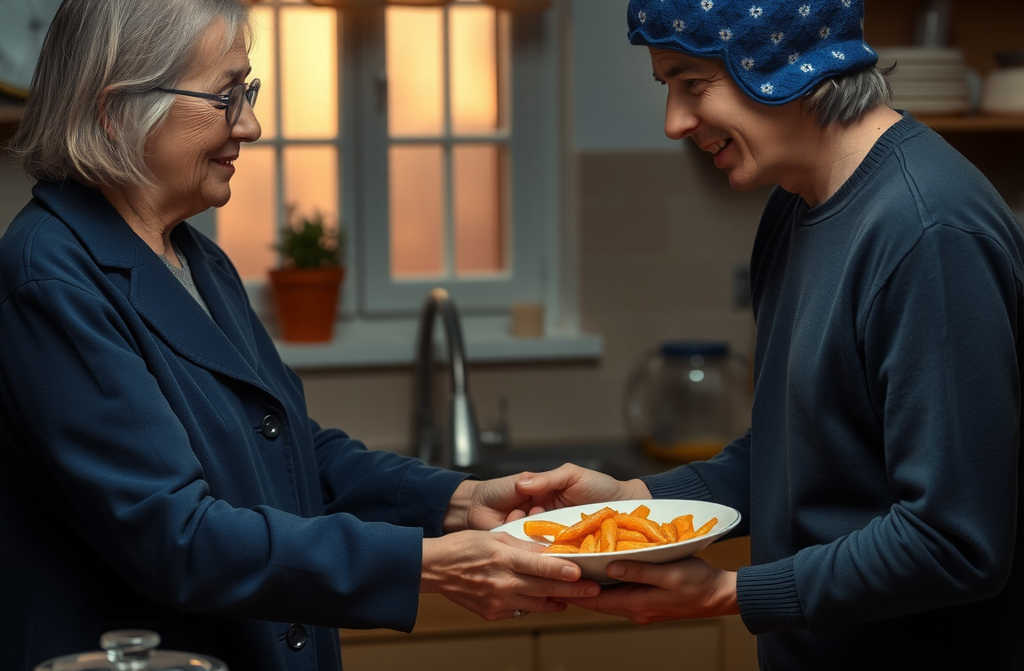 בעוד הילדים מתפשטים במסדרון והנכדים מיד מדליקים טלוויזיה על ווליום גבוה, רבקה הלכה למטבח. הידיים שלה פתחו לבד את המקרר, הוציאו ביצים, שמנת, בצל. הראש חשב על האוטובוס שיוצא בעשר, ועל הכובע הכחול עם פונפון שתלוי על המתלה, שכבר כנראה לא יסע היום לשום מקום.