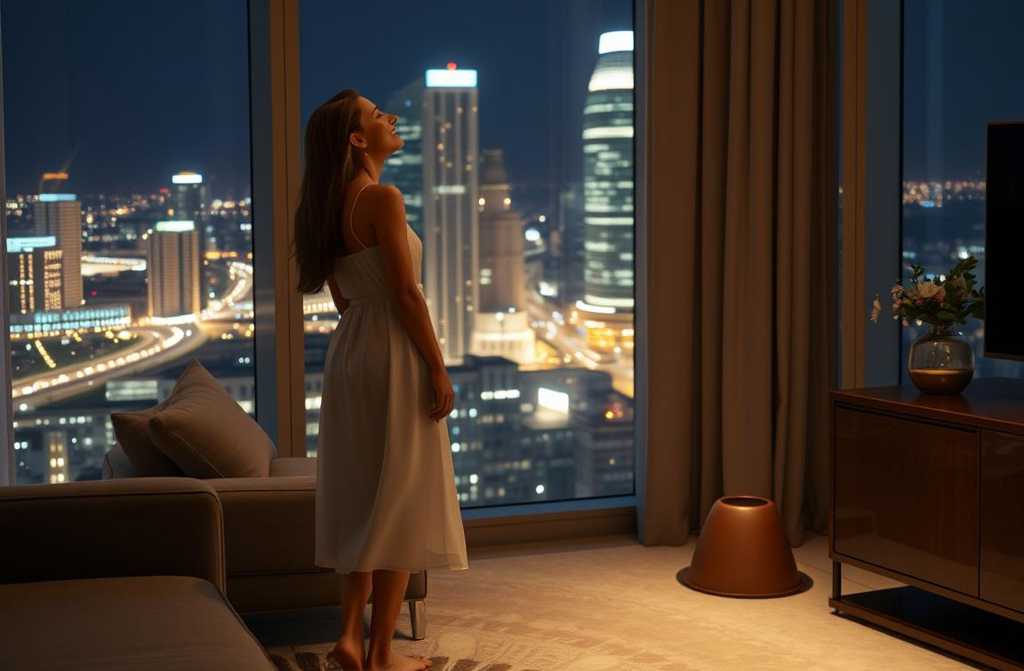 דלת הסוויטה הנשיאותית נסגרה בעדינות אחרי הפורטר. אלומה נשארה לבדה בחלל המרווח עם חלונות משקיפים עד קצה השמיים.