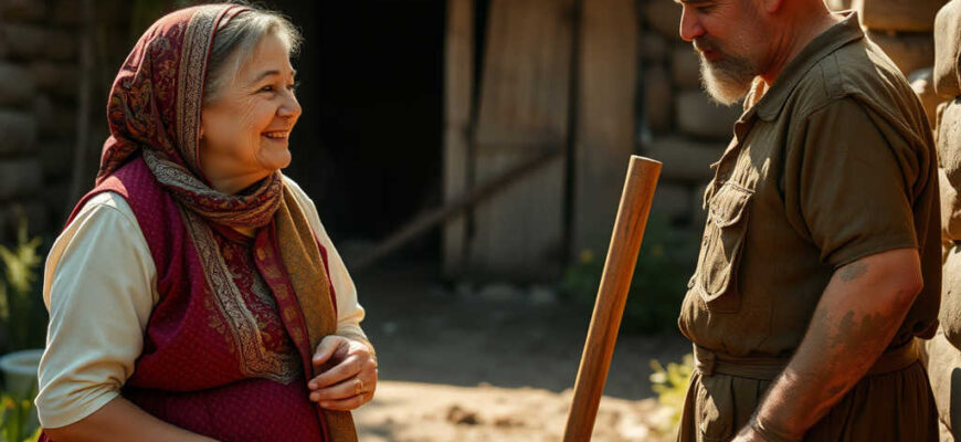 פנינה, שכל עולמה עירוני, לא מבינה את המנהג. נראה לה מוזר שמישהו קובר את בעלה מאחורי הגינה, ועוד שם מקל.