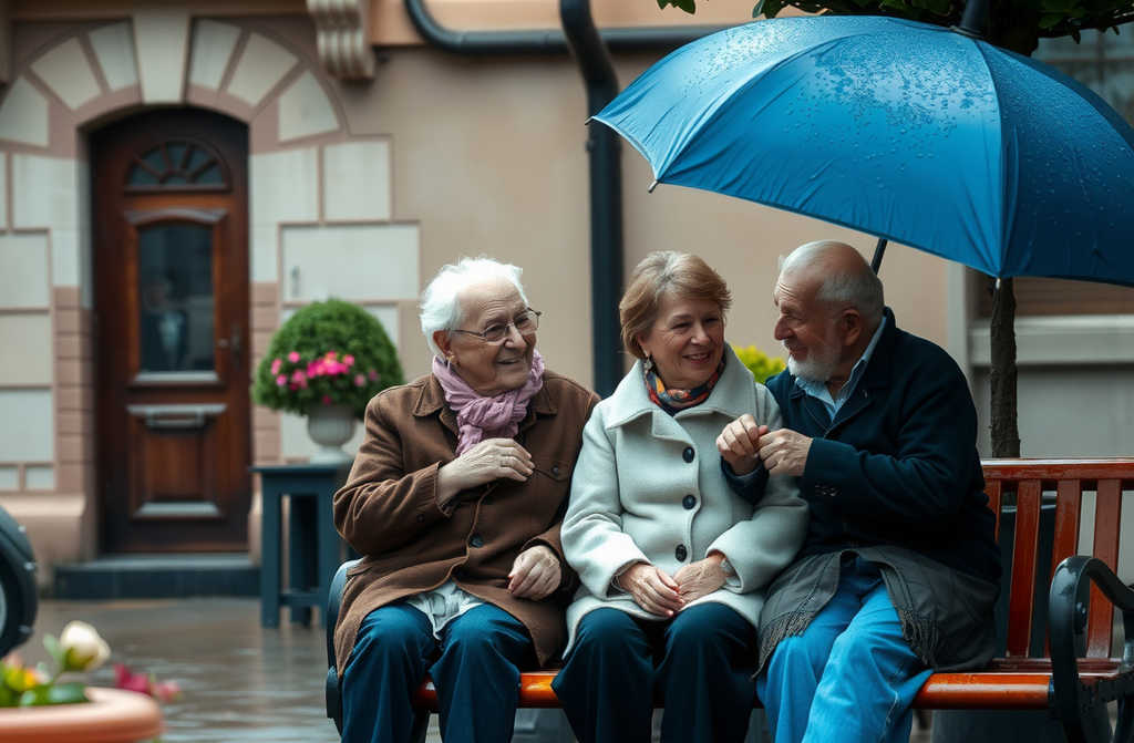 Они молчали, слушая, как дождь стучит по лавке. Но это молчание было не тяжёлым, а скорее тёплым, как будто они знакомы целую жизнь и больше не нужно ничего говорить.