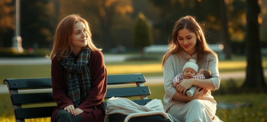 נועה יושבת בפארק עם עגלה. הסתיו חמים, שקוף. עלים תחת הרגליים. בעגלה ישן בנה. שלה. סוף סוף.