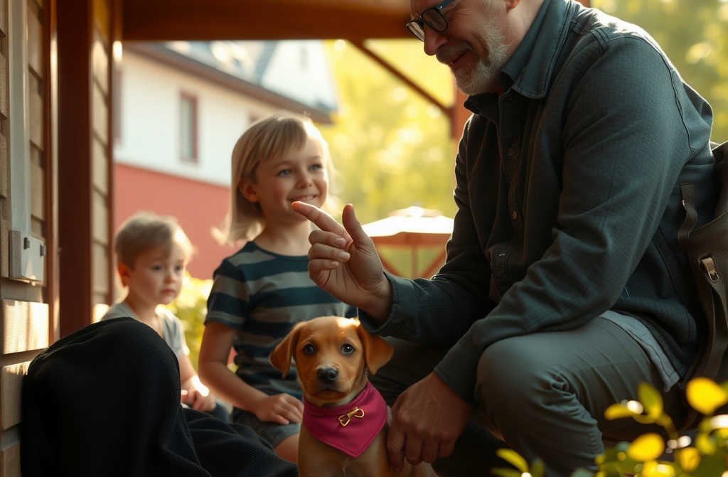 אני קם, נעמד בחצר, אור השמש החדש מחמם לי את הלב. והנה, על המדרגות, יושב ילד דומה לי כל כך, מחבק את הגור. “אתה… אולי אתה אבא שלי?” הוא שואל בלי פחד.