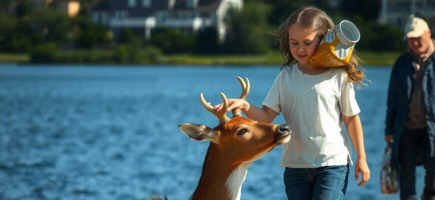 ברגע שהגיעו ליבשה, השכן הטוב עזר לנעמה לשים רצועה על הצבי ולקחו אותו חזרה אל היער מוגן ושלו.