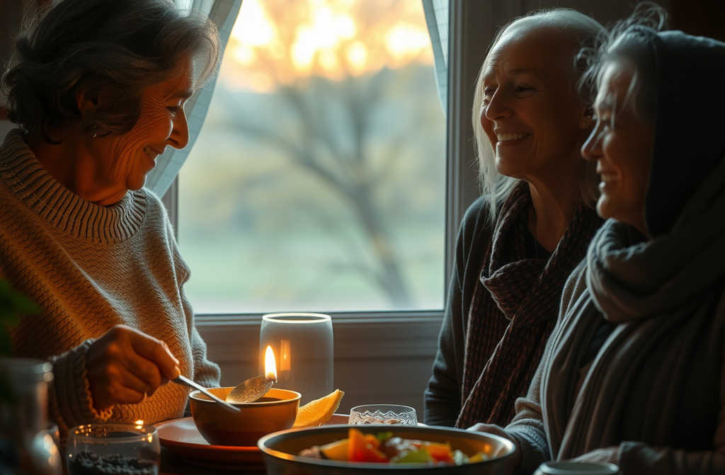 היה כבר חושך מוחלט בחוץ, והשתקפות של שלושה סביב השולחן נראתה על הזכוכית, אור הדוד, אדים מעל המרק. כמה מטושטש, אבל חמים.