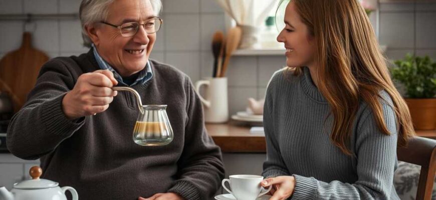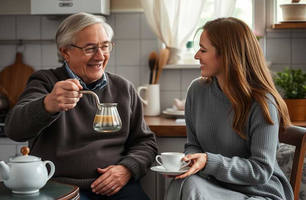 התיישבו לשולחן עם תה ועוגה.