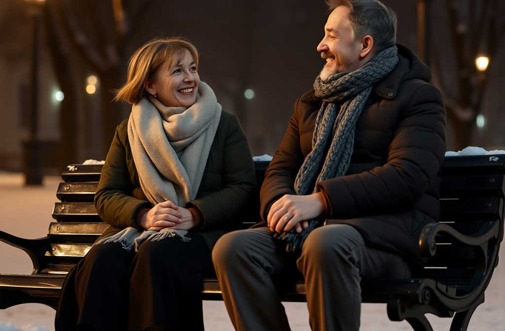 בספסל ישב גבר בגילה, אולי מעט מבוגר ממנה.