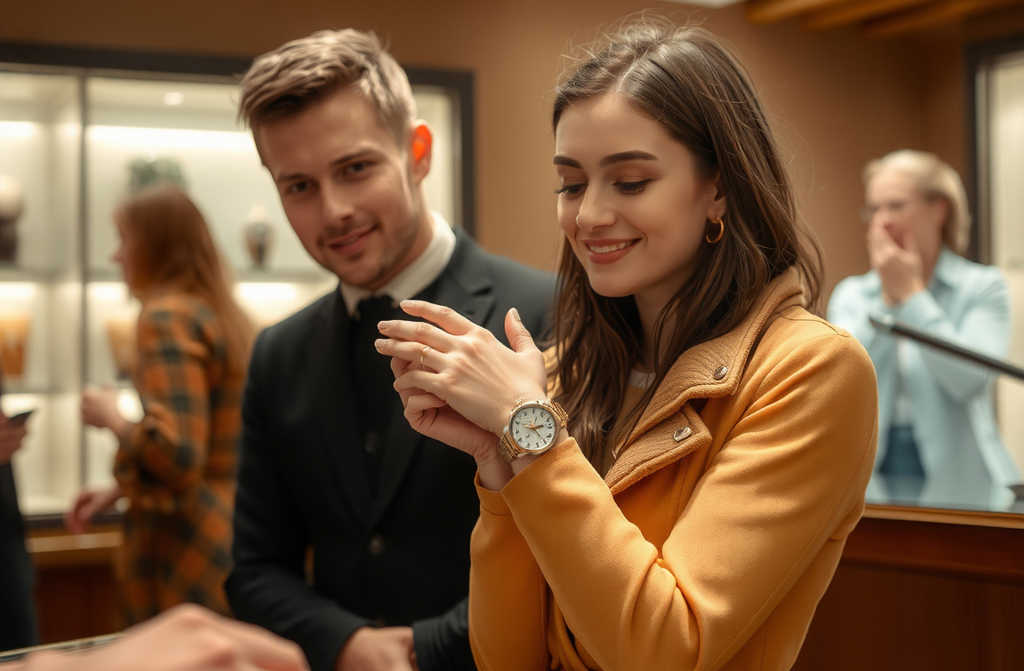 פנים חנות יוקרתית לשעונים בתל אביב. מנהל החנות, בחליפה מוקפדת, עומד בידיים שלובות, מביט בזלזול גלוי בזוג צעיר. הם לבושים בסווטשירטים רחבים ונעליים פשוטות.