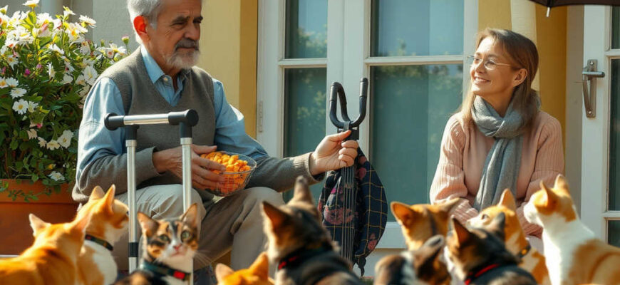 למחרת, כשבשובם לחצר, אותו האיש שוב מכוון כמה צעדים, ממתינים לו שלושה חתולים. כנראה ישבו שם לא מעט זמן.