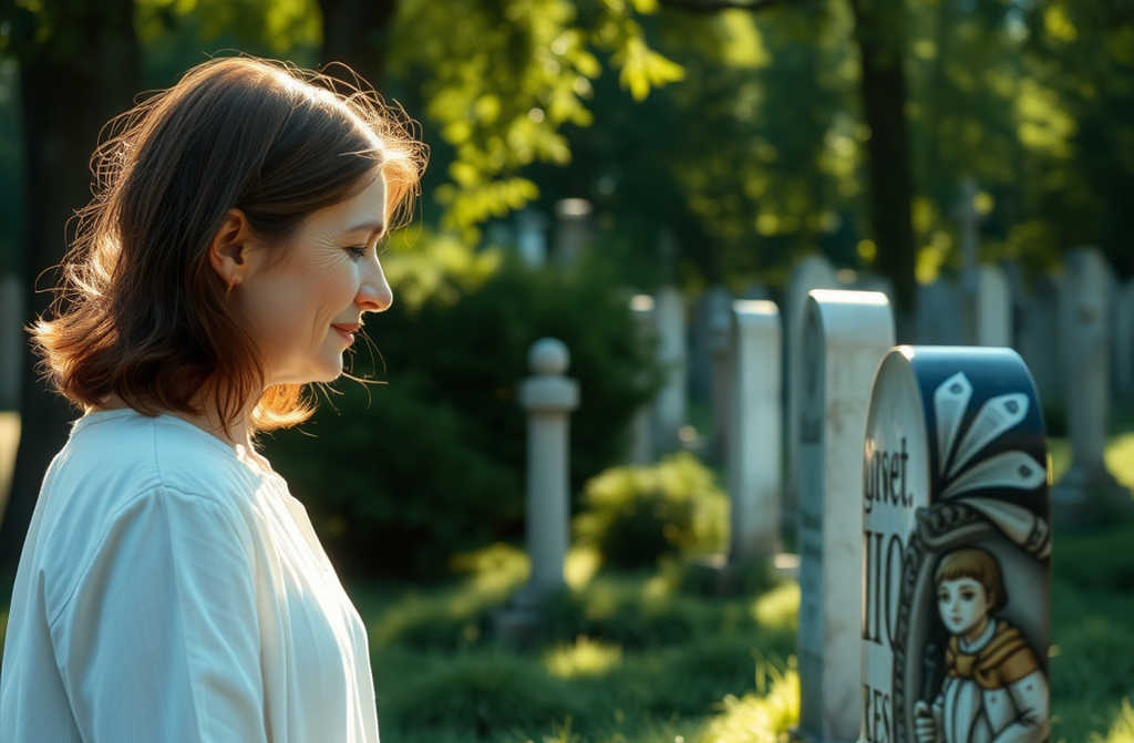 כעשר דקות לאחר מכן צעדנו יחד בין מצבות בית העלמין הישן. הובילה אותי אל קבר כלשהו; על האבןהתמונה של אותה אישה.