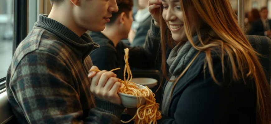 בחור, אתה לא יודע איך אוכלים ברכבת? זו הפעם הראשונה שלך או מה? זה פשוט נורא! התרגזה הנוסעת.