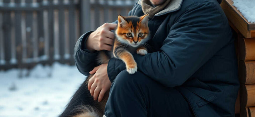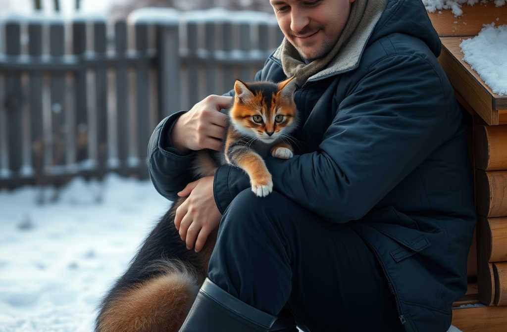 שם, בפנים, מכורבל בשמיכה, שכן גור חתולים קטן מטונף, קפוא וכמעט לא נושם. עיניו בקושי נפתחו, גופו רעד מקור. לביא מצא אותו איפשהו, ובמקום לגרש או להתעלם ממנו, החליט לשמור עליו. הוא ישן בחוץ כדי לא להבהיל את הגור ושמר על הפתח כאילו בתוך המלונה יש אוצר יקר מפז.