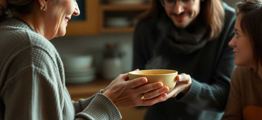 למחרת, היא באה אליהם בלי להודיע. מביאה מרק. שחף מופתעת, נעם נבוך.