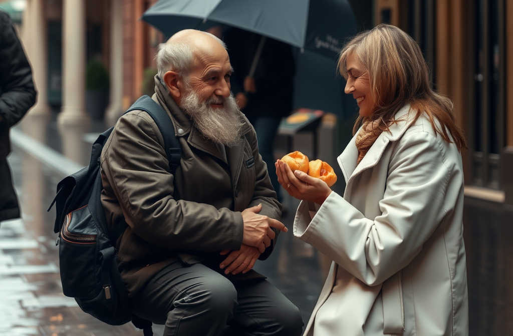 המראה הזה מקפיא לרגע את העוברים והשבים ברחוב הירושלמי הסואן. מכונית יוקרה שחורה עוצרת בשקט לצד המדרכה, במקום בו שוכב מחוסה ישן עטוף בבגדים קרועים. הדלת נפתחת, ואישה צעירה יורדת. היא עוטה מעיל לבן בוהק, שנראה כאילו עלה הון בשקלים חדשים.