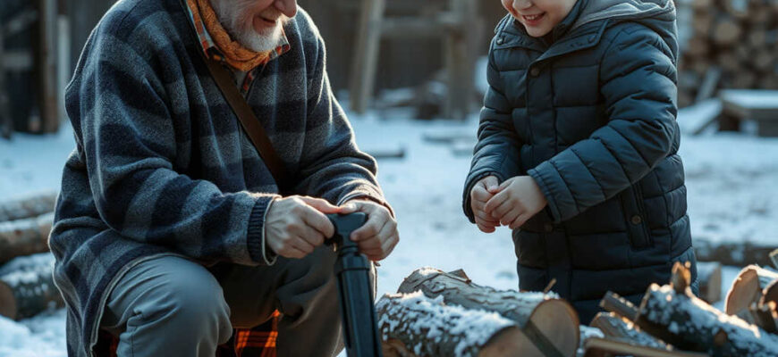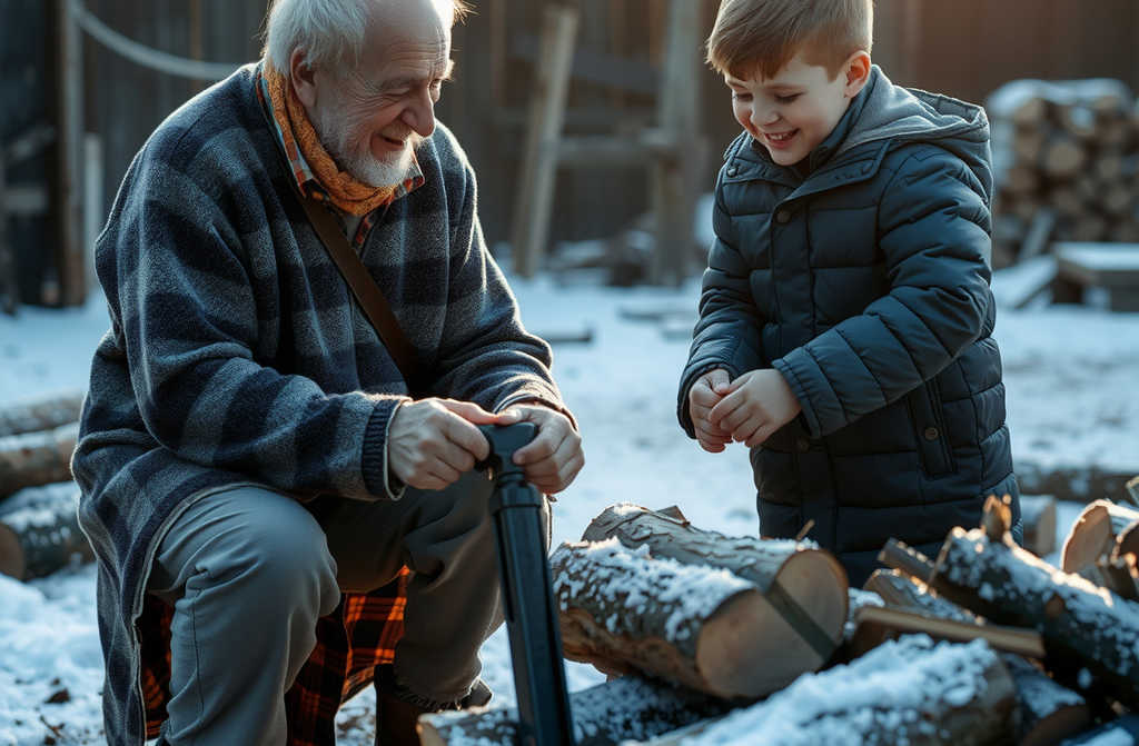 לקחתי את הגרזן הישן ויצאתי למחסן העצים. דניאל עמד על המדרגה, עטוף במעיל יקר, ומביט מבולבל במסך שלו הכבוי.