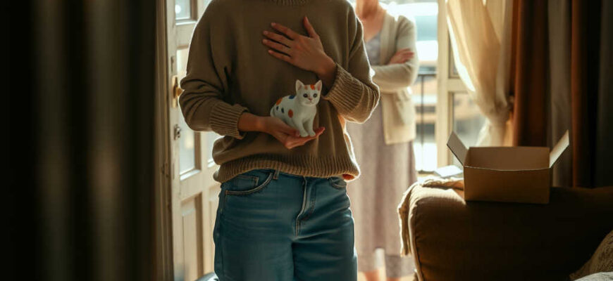 נזכרה הפסלון של החתול. שם שמרה בסוד עגילים וטבעת, לא יקרה במיוחד, אבל יקרה לה כי שייכת לסבתא ז”ל. יובל תמיד חשב שזו סתם זבל. אולי זרק את זה? הכול זרק למרפסת. אילנה פתחה את הדלת