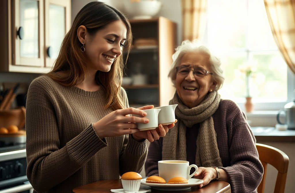 הקומקום רתח, הכוסות נערכו, על השולחן צלחת גביניות שחומות וזהובות.