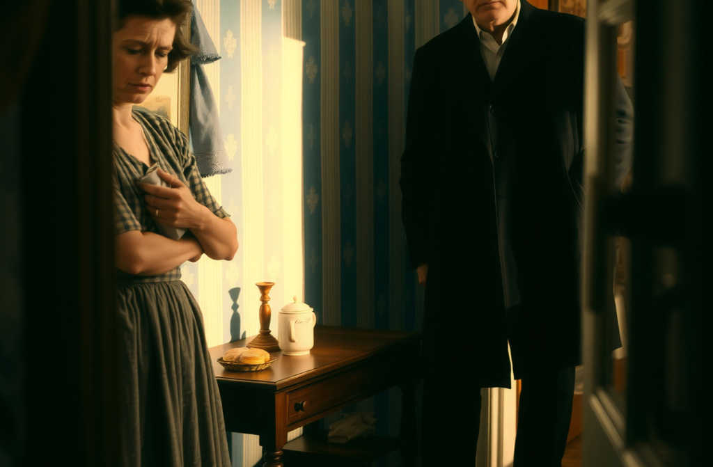 טוב, רות, אני יוצא! אל תלווי אותי. אחזור מאוחר! תכיני לי למחר את החולצה והמכנסיים הכחולים, אל תשכחי! צריך גם לאסוף מהנקיונות! קרא מהכניסה ראובן, השליך במהירות מעיל גשם ארוך על כתפיו, הביט היטב במראה, חטף את הכובע ויצא, הטיח את הדלת מאחוריו.