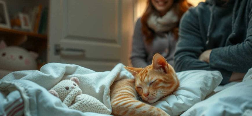 החתול שכב בשקט, נשם חלש בעיניים עצומות, ללא תגובה לדברי עדי.