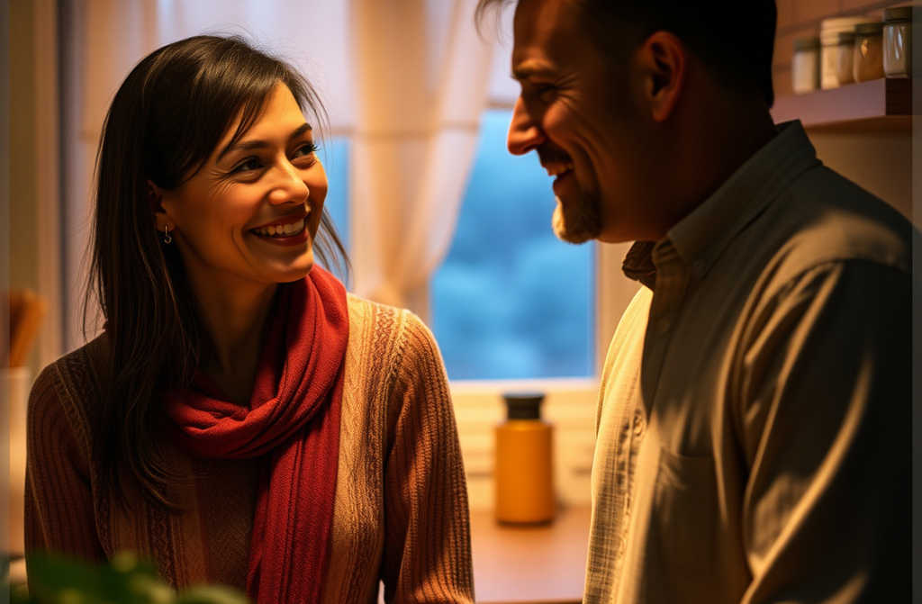 דן הגיע מאוחר, עם שקית מרכולים. הוא ראה את אסיה על הרצפה ושאל: מה קורה?. היא ניסתה להסביר, אך המילים היו קטעים. דן ישב לידה, הביט בידיה ואמר: קחי כמה ימי מנוחה. הוא אמר זאת בלי כוונה רעה, אך אסיה שמעה חוסר הבנה. ימי מנוחה משמעותם חסר כסף ולקוחות לא מרוצים.