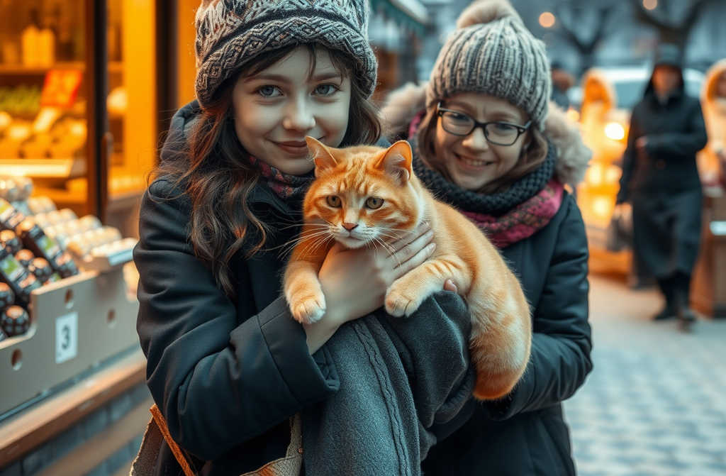אנשים נכנסו ויצאו, הדלתות נפתחו ונסגרו, ובצד ימין של הכניסה לחנות ישב חתול גינגי, עיניו חכמות, מביט סביב בנונשלנטיות, כאילו כלום לא מטריד אותו, רק מדי פעם הניע את כפותיו מהקור. עינת התקרבה והתכופפה אליו. סימנה לתמר שתיכנס בעצמה לחנות.