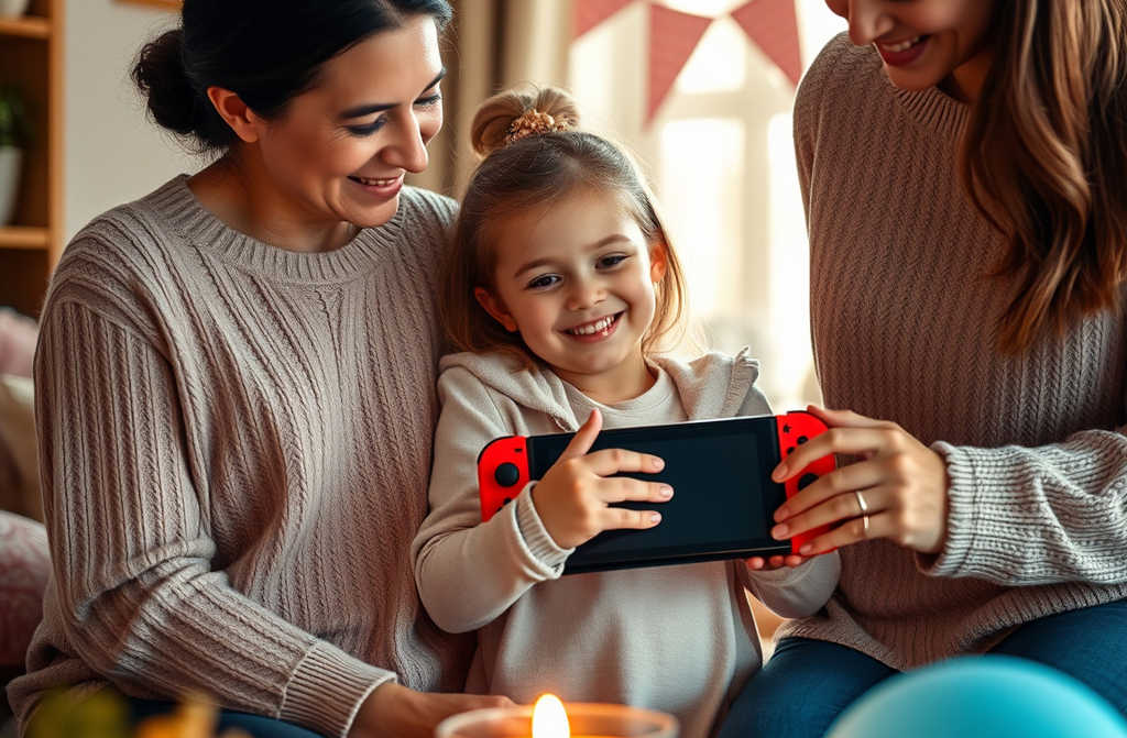 מאיה קרעה את האריזה ונשימתה נעתקה הייתה שם קונסולת סוויץ’ של נינטנדו. היא קפצה משמחה וחיבקה את הקופסה צמוד לחזה, כאילו פחדה שתיעלם לה. “זה באמת שלי?” שאלה בקול חלש. “בטח, נסיכה שלי. עכשיו… מה אומרים?” גילה התערבה, נהנית שכל תשומת הלב סביבה. “תודה רבה סבתא! זה המתנה הכי יפה שיכולתי לבקש!”