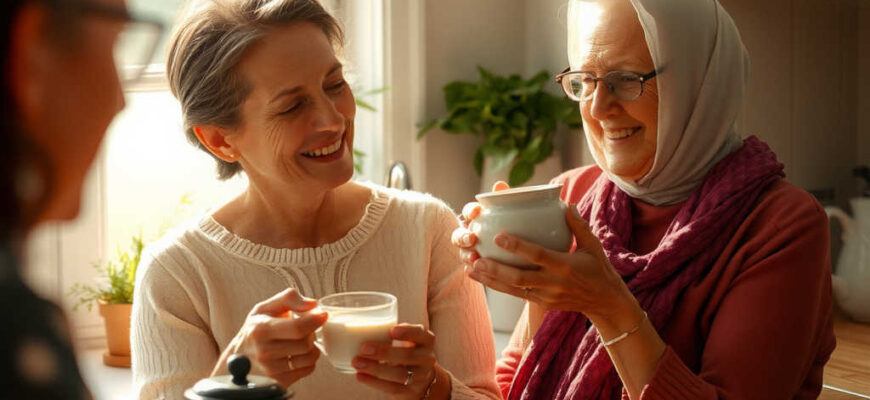טליה העמידה קומקום, סידרה חטיפים בשקט והניחה שתי כוסות תה ריחניות על השולחן.