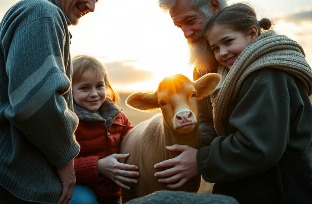 כולנו עזרנו ליעקב להעלות את העגל לעגלת הטרקטור. כל הדרך למושב, שכב העגל בשקט, כאילו ידע שמעכשיו לא ישכחוהו. כשחזרנו, אנשים זרמו לראות את האורח החדש. מישהו מיהר להביא שמיכה נקייה, אחר פיילה מלאה חלב.