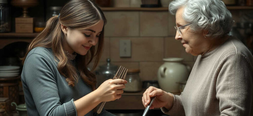 הדודה הזמינה אותי לשבת והתחילה לערוך שולחן. כשהיא הניחה את הצלחות והסכו”ם, ראיתי שהם לא נקיים. בזמן שהיא מגישה לי מהסיר, שלפתי מהתיק שלי מגבוני חיטוי והתחלתי לנקות את המזלגות בשקט.