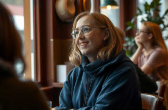 ליד אחד השולחנות ישבה צעירה עם שיער בלונדיני וגולש.