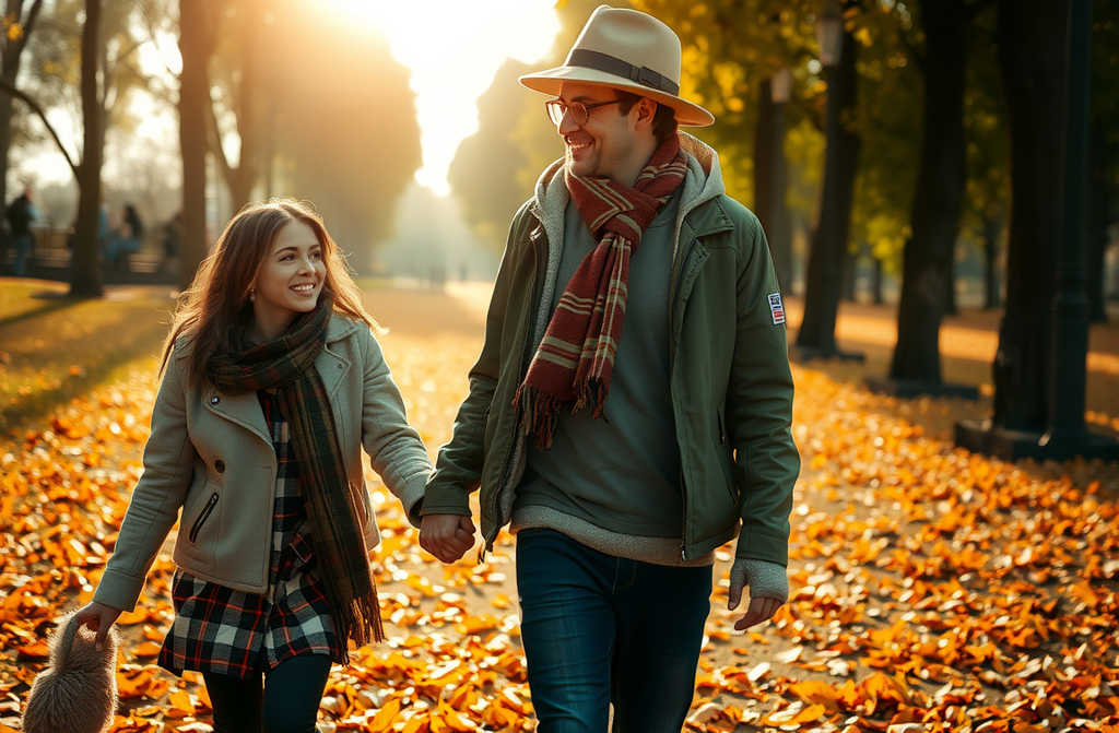 בלילה אחד בסתיו, טיילו יחד בפארק הירקון. העלים אדומים על השביל, עץ אחרי עץ, אוויר נעים, השמש כמעט שוקעת.