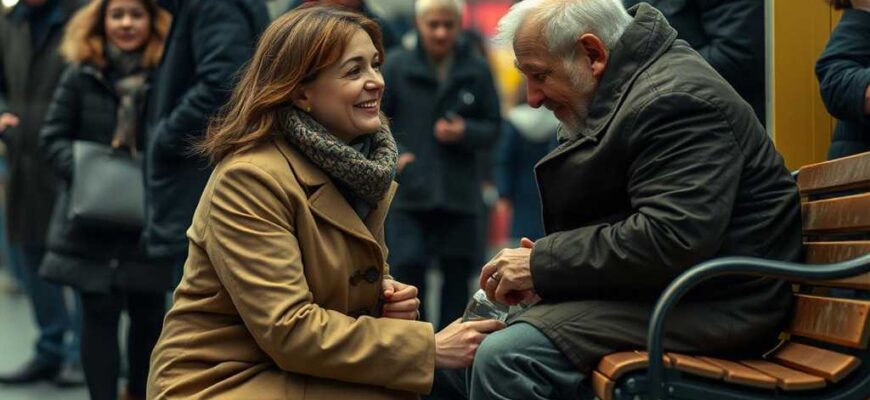 היא חוזרת אל הספסל שלה. שוב שקט כבד של המתנה. אבל משהו השתנה. מבטה כבר לא מדלג על אנשים באי־נעימות. היא רואה את הפרטים: המוכרת מגישה תה חם לקשישה, גבר עוזר לאם להעלות עגלה. ההתנהגויות הקטנות הללו מתחברות לא לתמונה קודרת, אלא למארג עדין של סולידריות.