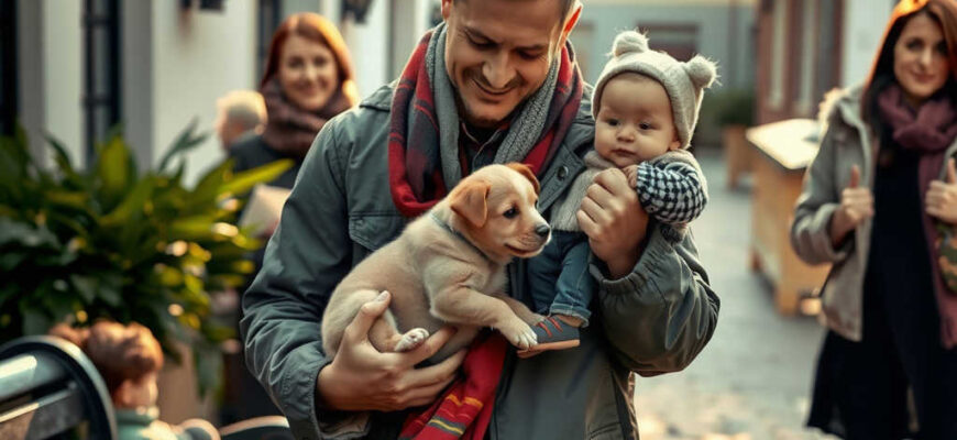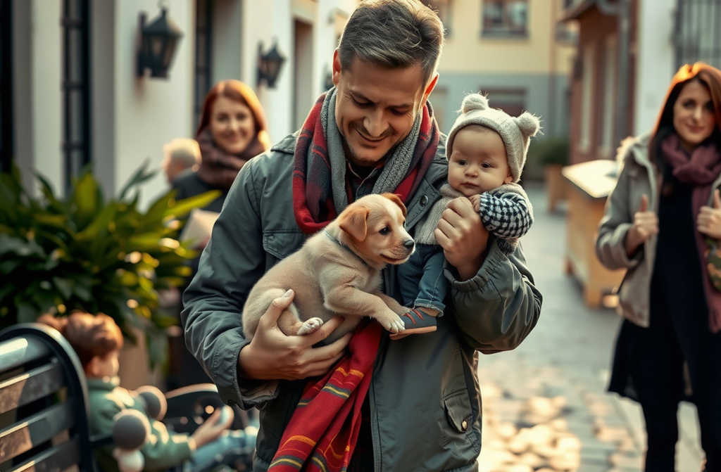 בשתי ידיים רכות הרים את הגור וכיסה אותו בצעיף, כאילו הרים תינוק קטן. מאחור נשמע קול אישה נרגש, אולי גם דומעת.