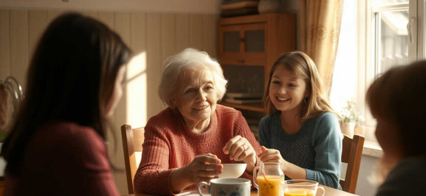 הבנות דואגות ואוהבות את סבא וסבתא שלהן. בבית שורר חום, נדיבות וכבוד הדדי.