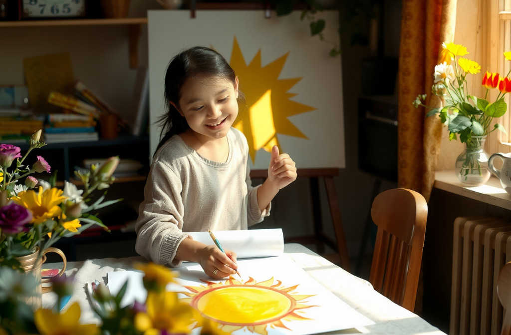 את יודעת מה עשיתי אתמול? שאלה, מביטה בעלים הירוקים בעצים מחוץ לחלון. קניתי לי צבעים יקרים. וציירתי לי עיגול צהוב. שמש.