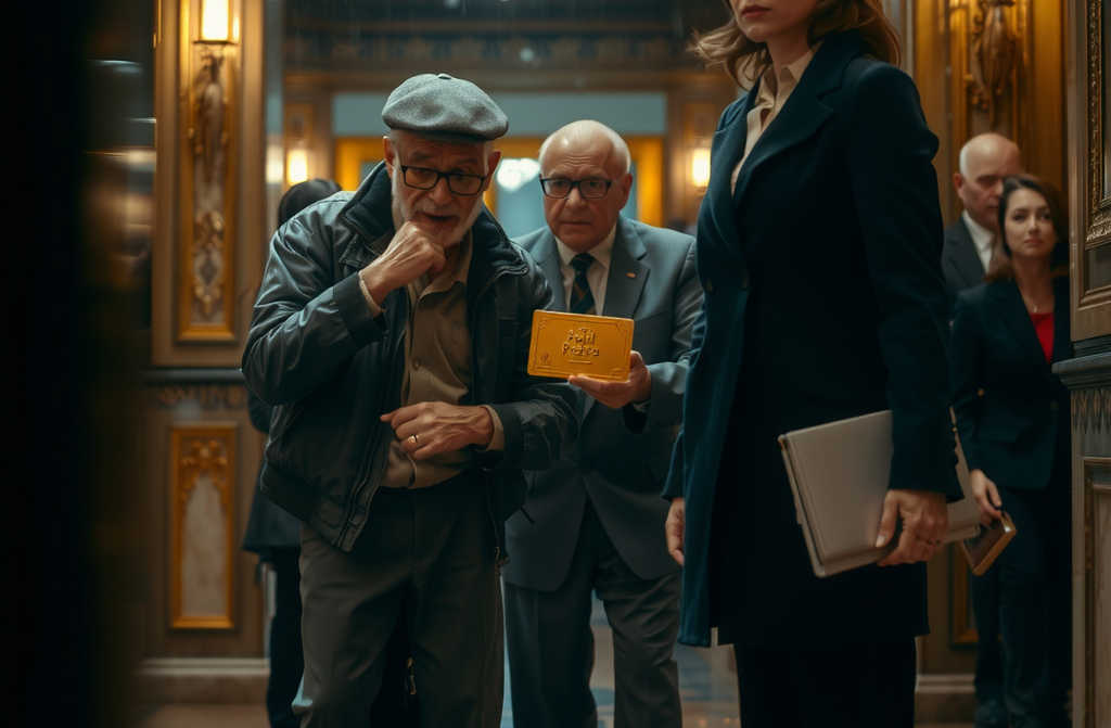 ואז עיניו של הזקן נדלקו לפתע. המבט המתעורר והחד נבדל מאוד מהעייפות קודם לכן. מתיקו הקרוע שלף לא עודף שקלים, אלא כרטיס זהב עבה עם חריטה יוקרתית מסמל המלון.