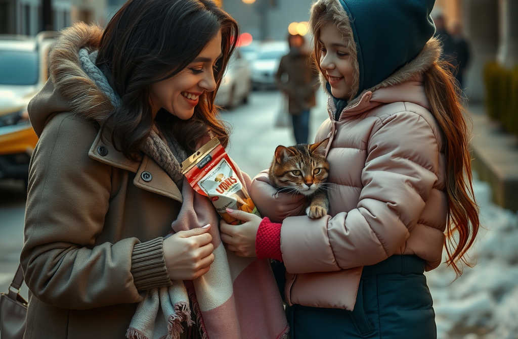 מחבקת חתולה רועדת. “בבקשה, גברת” התחננה. “רק קצת אוכל לחתולה. אני אחזיר כשאגדל”