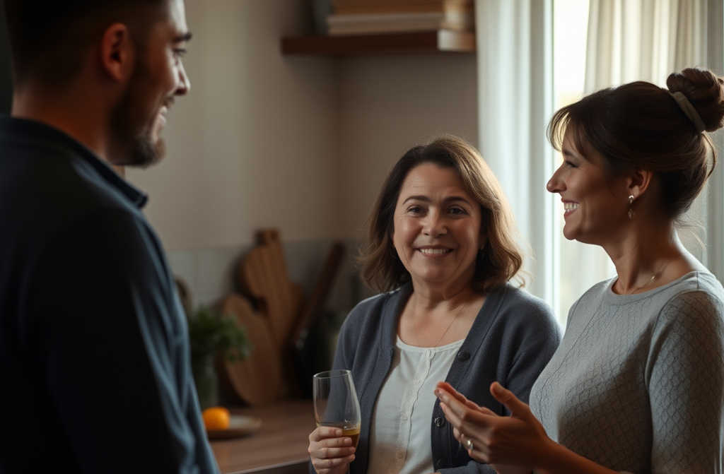 מזל טוב, שירה אומרת במבוכה, תוך כדי שהיא מנגבת ידיים במגבת. היא בדיוק סיימה לבשל את ארוחת הערב. תיכנסו, למה לעמוד במסדרון?