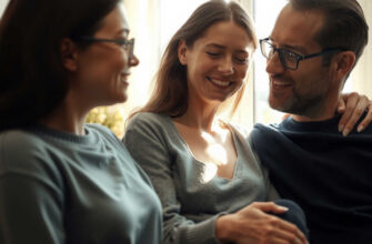 לצידה גבר שקט, עוצמתי, מחזיק את זרועה בעדינות.