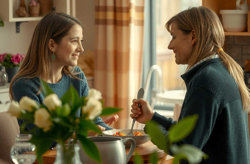 יעל, אני מצטער! אני כל כך אוהב אותך! התגעגעתי למרק שלך, לבית שלך, אלייך. תסלחי לי. אז בעצם התגעגעת למרק? התגעגעתי להכול, ובעיקר אלייך! טוב, תיכנס כבר. אני מתבייש ממך ומנועה. לא תגידי לה כלום? בסדר, לא אגיד. רוצה לאכול? מאוד. תודה.