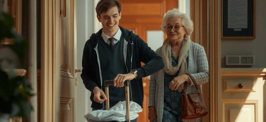 “אה, לא זיהית את הדוד שלך? אני טיפלתי בך כשהיית קטן! והנער (מצביעה אל הבחור) זה בן דוד שלך, הוא התחיל ללמוד בתל אביב ואין לו היכן לגור. החלטנו שהוא יתגורר אצלך זמנית. אחר כך נקנה לו מיטה, אז יהיה בסדר. הבאנו לך מתנות! אבא שלך לא התקשר?”