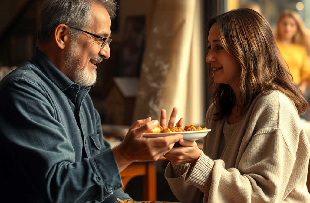 אחרי סיבובים של עייפות ברחובות, אספתי את כל האומץ ונכנסתי למסעדה בפינת רחוב ש smelled like גן-עדן. ריח שווארמה לוהטת, אורז מהביל, חמאה זורמת הרעב שלי הפך לסערה. השולחנות היו מלאים, אף אחד לא שם לב אליי, עד שגיליתי שולחן שהתפנה עם כמה חתיכות אוכל שנשארו. הלב שלי קפץ.
