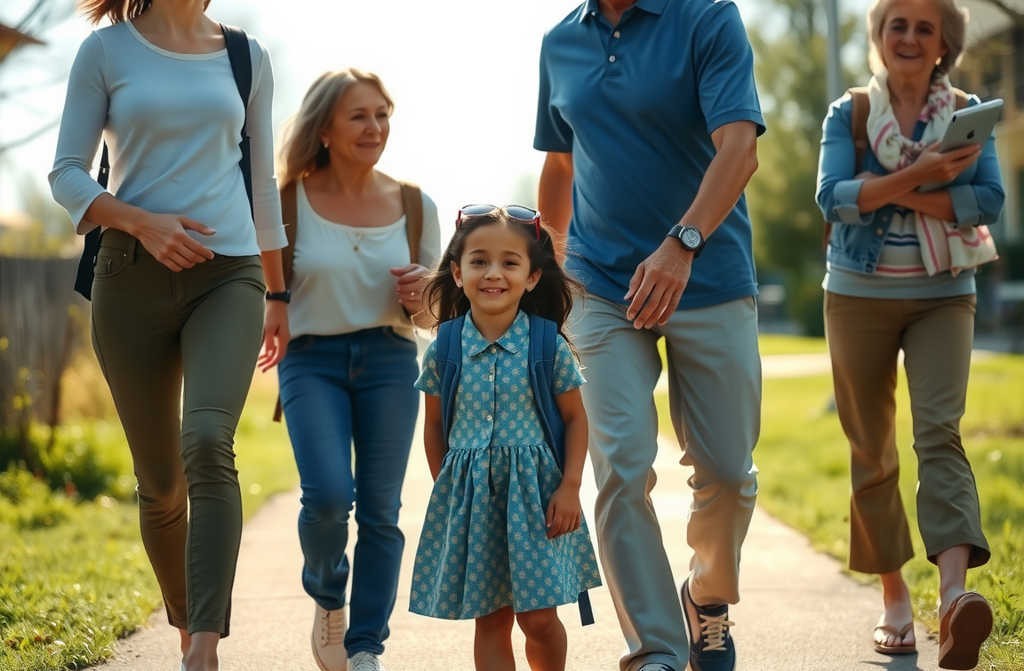 וכך, תוך צחוק ושיחה, הם צועדים אל בית הספר, ואחריהם הולכים אמא וסבתא שתיהן מאושרות.