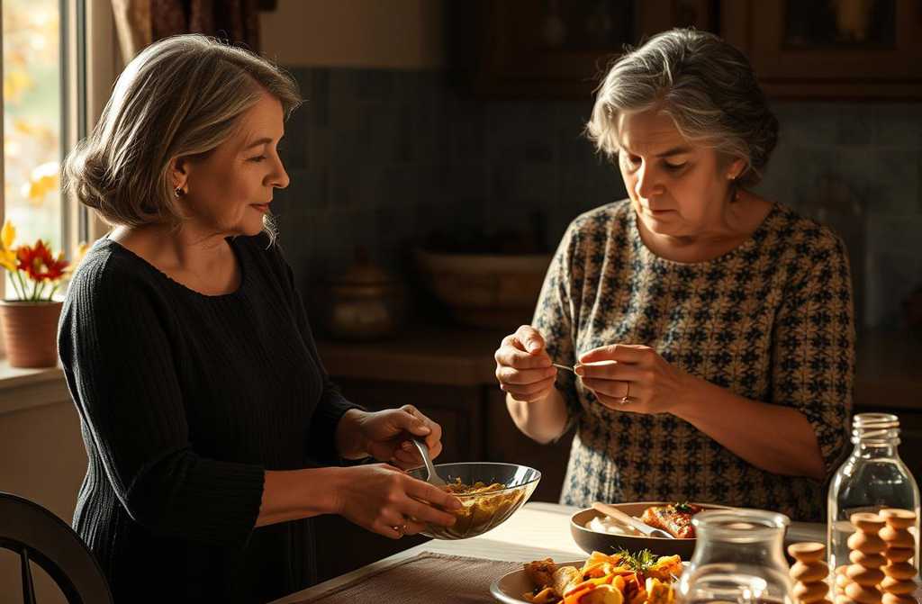 המילים נתלו באוויר. מיה קפאה עם קערת הסלט בידיים, מביטה בחמות. הגבות שלה נחרצו, העיניים הצטמצמו. רות המשיכה ללעוס, מתעלמת מתגובת הכלה.