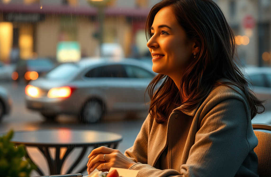היא פסעה ללא כיוון עד שהגיעה לוויטרינת בית קפה קטן בפינת הרחוב. אור כתום נשפך על שולחנות עם מפות לבנות, אגרטלים עם פרחים, וסועדים נינוחים ללא דאגה. נעה פתחה את הדלת.