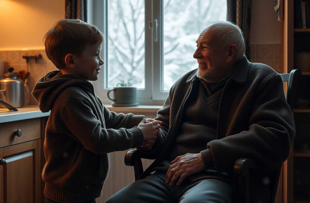 רק בן שתים עשרה היה לוקאס, אבל חייו כבר עוצבו על ידי קשיים: אמו נפטרה כשהיה ילד קטן, ואביו נעלם זמן קצר לאחר מכן, והשאיר אותו לבד בעולם. ללא אף אחד שידאג לו, הפכו רחובות העיר לביתו — ישן בין פינות נטושות מתחת לגשרים, ליד רציפים, על ספסלי פארק קרים. כל יום היה מאבק: מבקש אוכל מאנשים זרים או אוסף מטבעות מעבודות מזדמנות. לילה חורפי אחד, עטוף בשמיכה מרופטת שמצא בפח, חיפש לוקאס מחסה מהרוח החזקה. בעוברו בסמטה צרה ליד מאפייה סגורה, קריאת כאב חלשה פילחה את השקט. לוקאס נעצר, נלחץ, אך גברו עליו הרחמים. בקצה הסמטה, בין ארגזים ושקיות זבל, שכב זקן בן שמונים רועד מקור. “בבקשה… תעזור לי,” לחש. לוקאס התקרב מיד, פרש עליו את שמיכתו, והציע למצוא עזרה. “אל תלך… אל תשאיר אותי לבד,” התחנן הזקן – דון חיים שמו. לוקאס לא יכל לעזוב; הוא ידע מהי בדידות. בקושי רב תמך בזקן אל תוך בית צהוב סמוך, חימם אותו, ושמע את סיפור חייו — אלמן בודד ללא משפחה. כשדון חיים שאל היכן ביתו של לוקאס, השיב הילד בלב כבד שאין לו בית, והוא ישן היכן שיוכל. מבט מלא חמלה עלה בעיני הזקן, ומילותיו: “הבית כאן ריק מדי. אם תרצה — תישאר איתי. לאף אחד, ובטח לא לילד, אסור להתמודד עם החיים לגמרי לבד.” לראשונה זה שנים, לוקאס הוזמן אל חום, בטחון ושייכות. באותו לילה, מעשה חסד קטן שינה את גורלם: ילד חסר בית וזקן בודד מצאו זה בזה משפחה וחיבוק — הוכחה שהתקווה מחכה גם בפינות הכי מפתיעות.